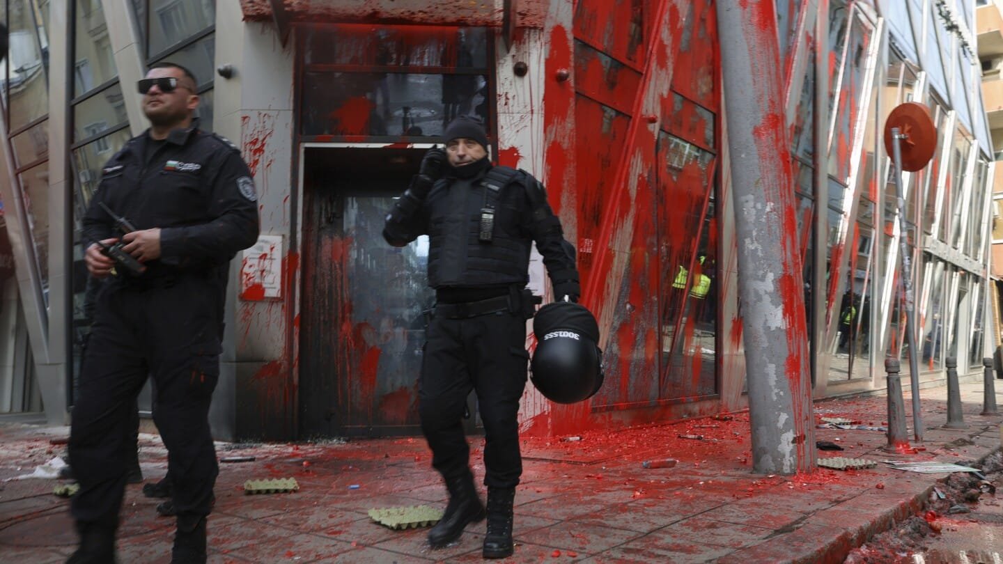 About 1,000 protesters gathered in front of the Sofia office of the European Commission, which is the European Union’s executive branch, and began throwing red paint and firecrackers at the building. A door was eventually set ablaze.
