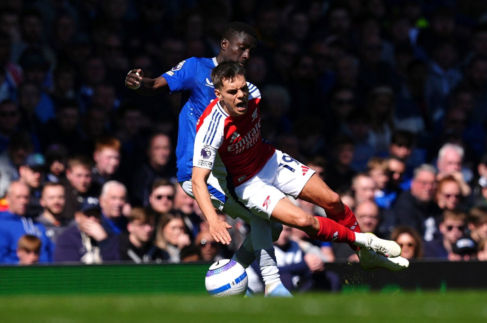 Arsenal’s weakened line-up struck first in the 34th minute when Raheem Sterling picked out Trossard and his low shot took Everton goalkeeper Jordan Pickford by surprise as it squirmed into the net.