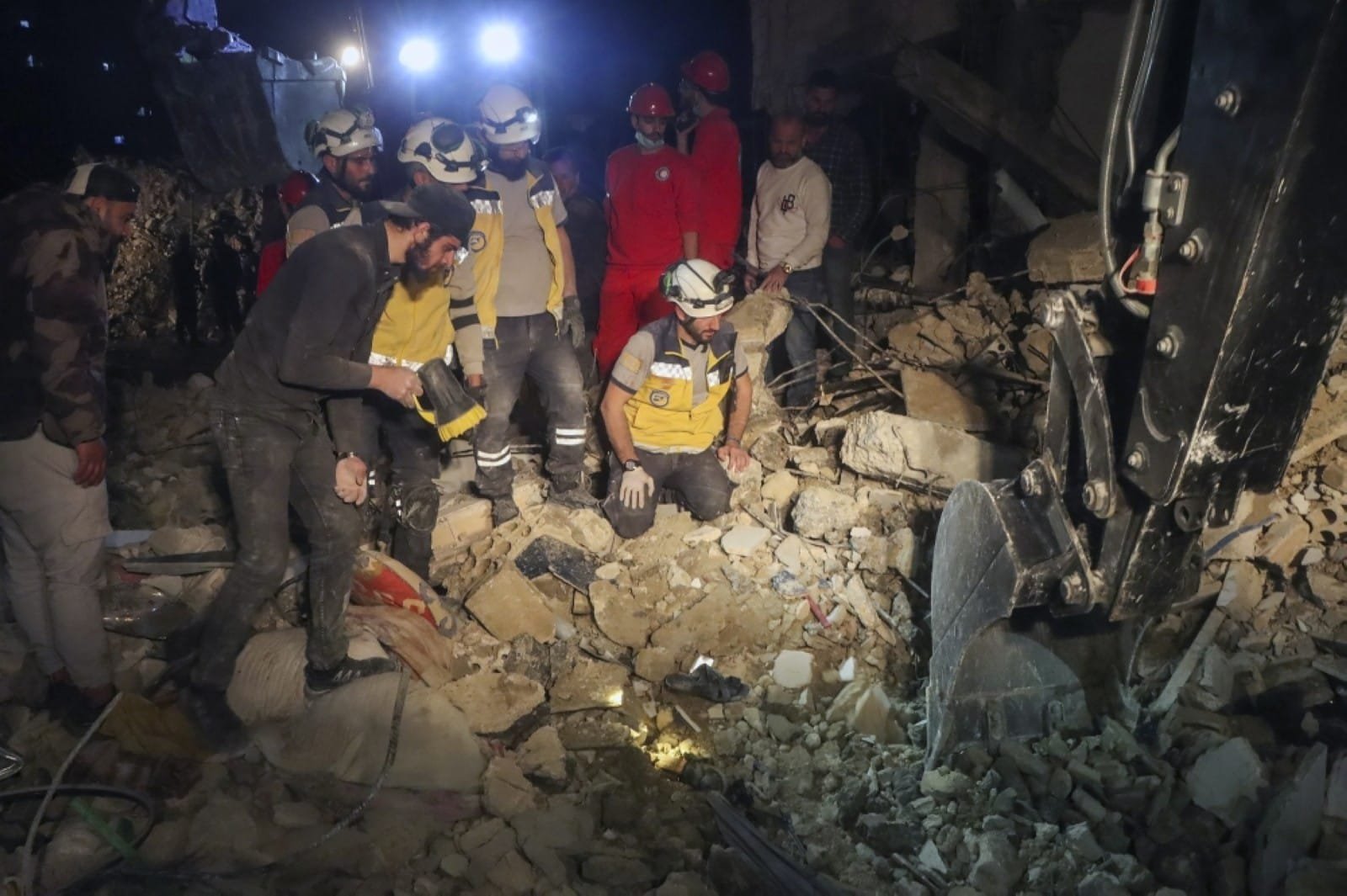 Syria’s civil defence team said 16 people had been killed “as a result of an explosion in a hardware store” in the apartment block.