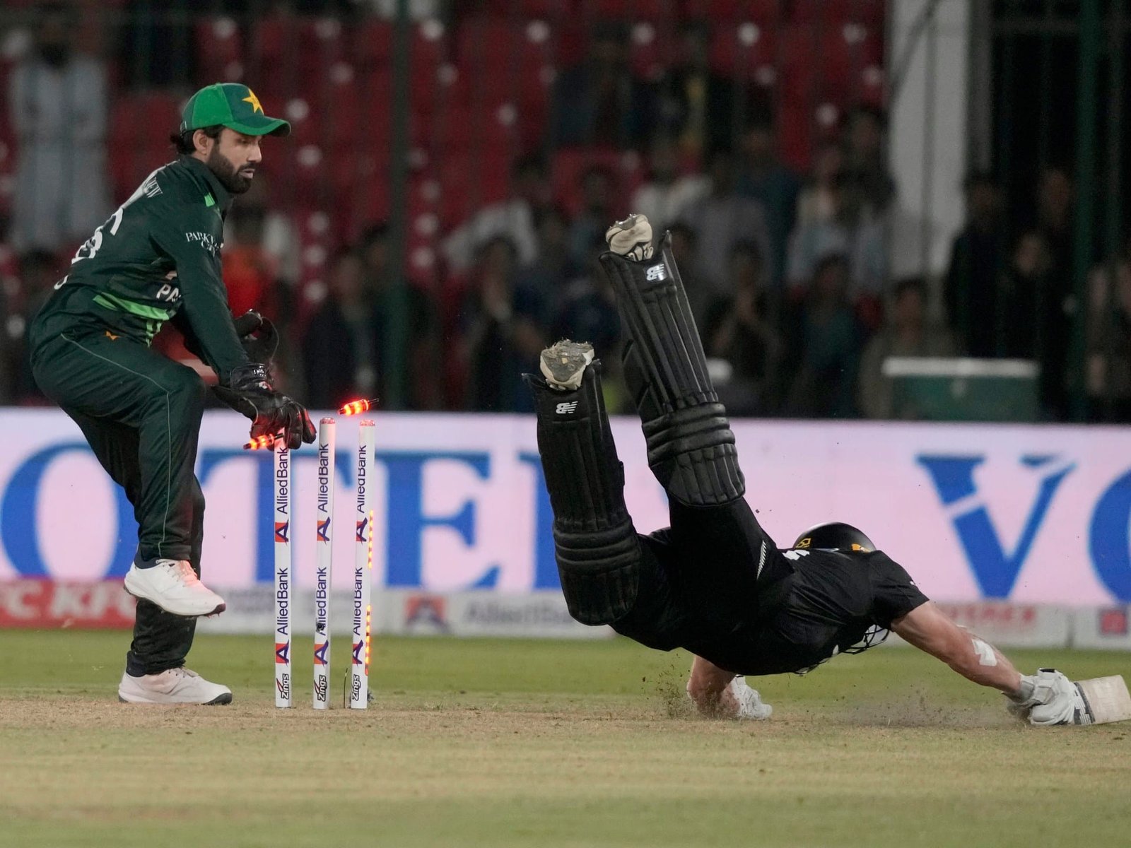 None of the Pakistan batters got a half-century while Daryl Mitchell (57) and Tom Latham (56) led New Zealand to a third successive win in the tournament, clinched by Pakistan’s 16th wide delivery.