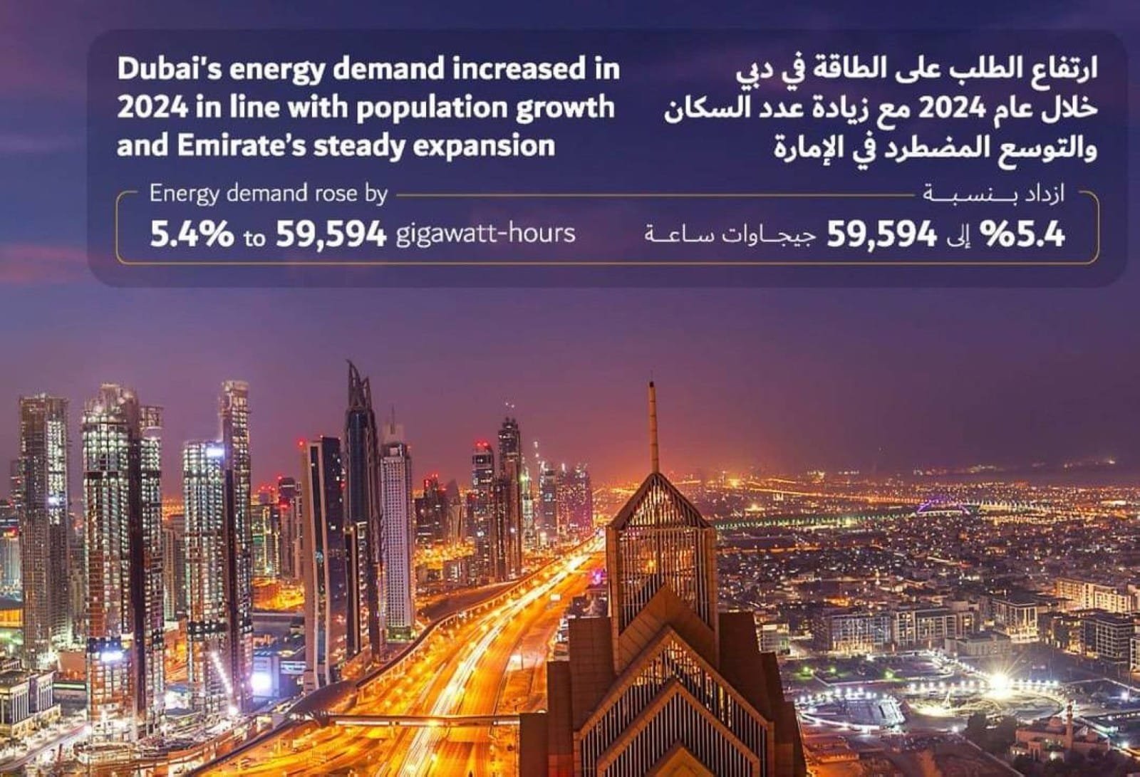Al Tayer said that energy demand in 2024 was 59,594 gigawatt hours (GWh), compared to 56,516 GWh in 2023.