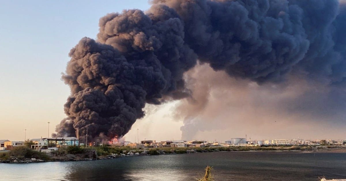 Dark plumes of smoke could be seen emerging from the vicinity of the country’s main maritime port in the city, where hundreds of thousands of displaced people have sought refuge.