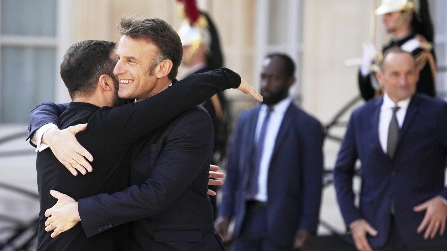 Before the leaders met in the luxury of the French presidential palace, Russian drone attacks overnight wounded more than 20 people and heavy shelling Thursday afternoon killed one person and knocked out electricity in parts of Kherson, Ukrainian officials said.