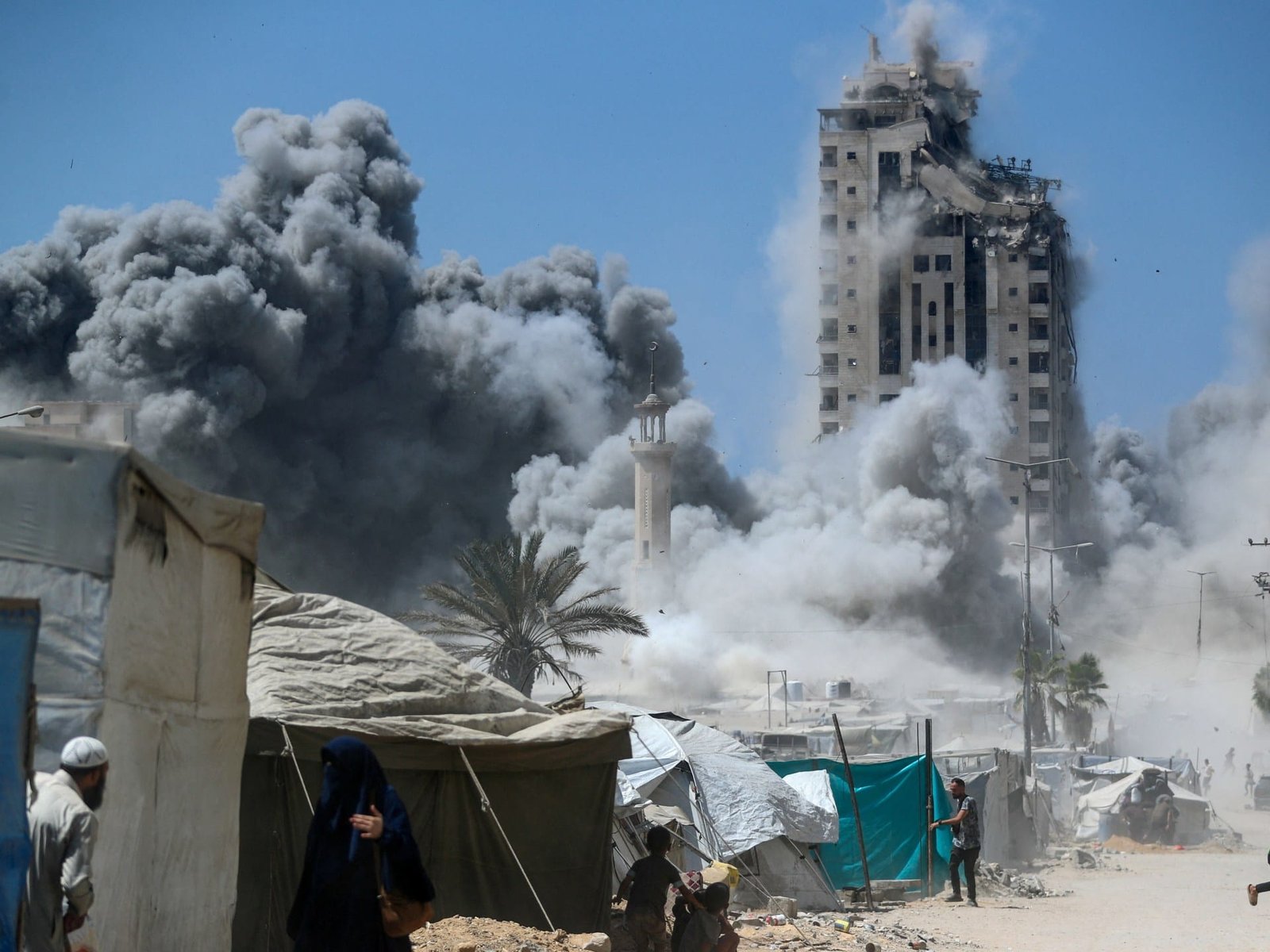 On Friday, the Israeli military ordered people in Mushtaha Tower, a 12-storey building located on the western side of Gaza City and surrounded by hundreds of makeshift tents, to evacuate, and later struck the building, claiming it was “Hamas infrastructure” and was used to plan and carry out operations against Israeli forces.
