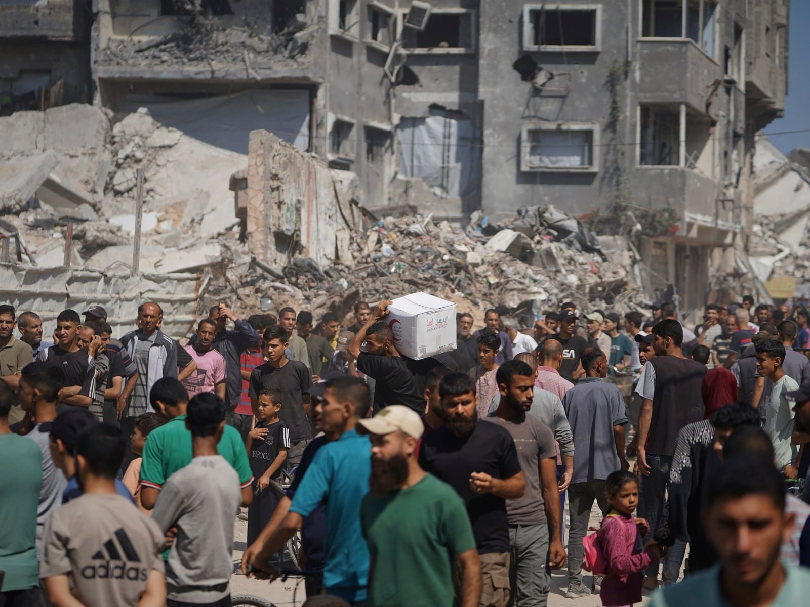 The aid boxes themselves barely meet subsistence needs. While the World Food Programme recommends 2,100 calories per person per day, Israel has capped aid at 1,600.