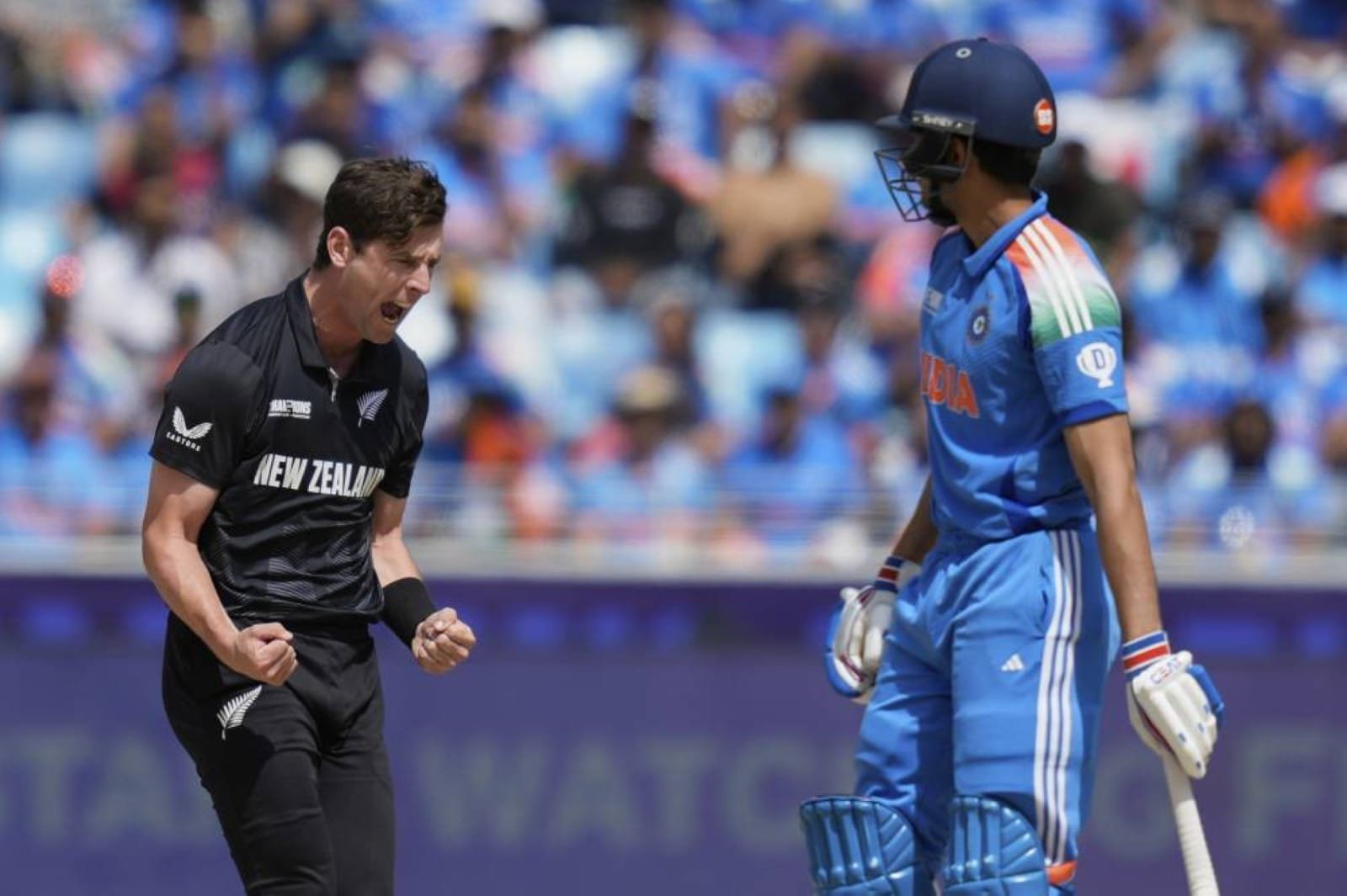 Henry struck the first blow to have the in-form Shubman Gill — India’s top batsman with 149 runs in three matches of the 50-over tournament — trapped lbw for two.