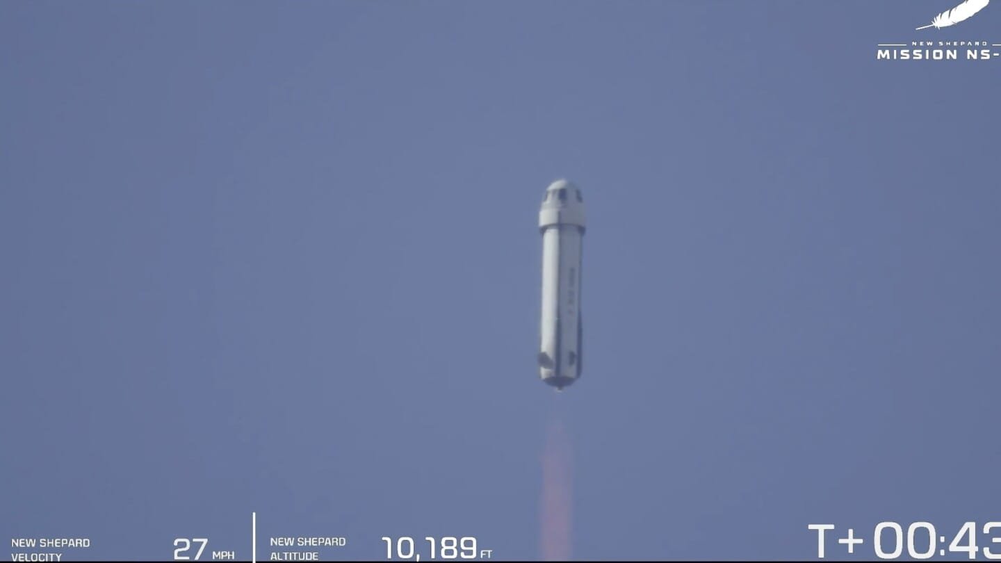 New Shepard alternates between flying passengers and experiments on short space hops. Blue Origin’s much bigger orbital rocket, New Glenn, made its debut launch from Cape Canaveral, Florida, last month.