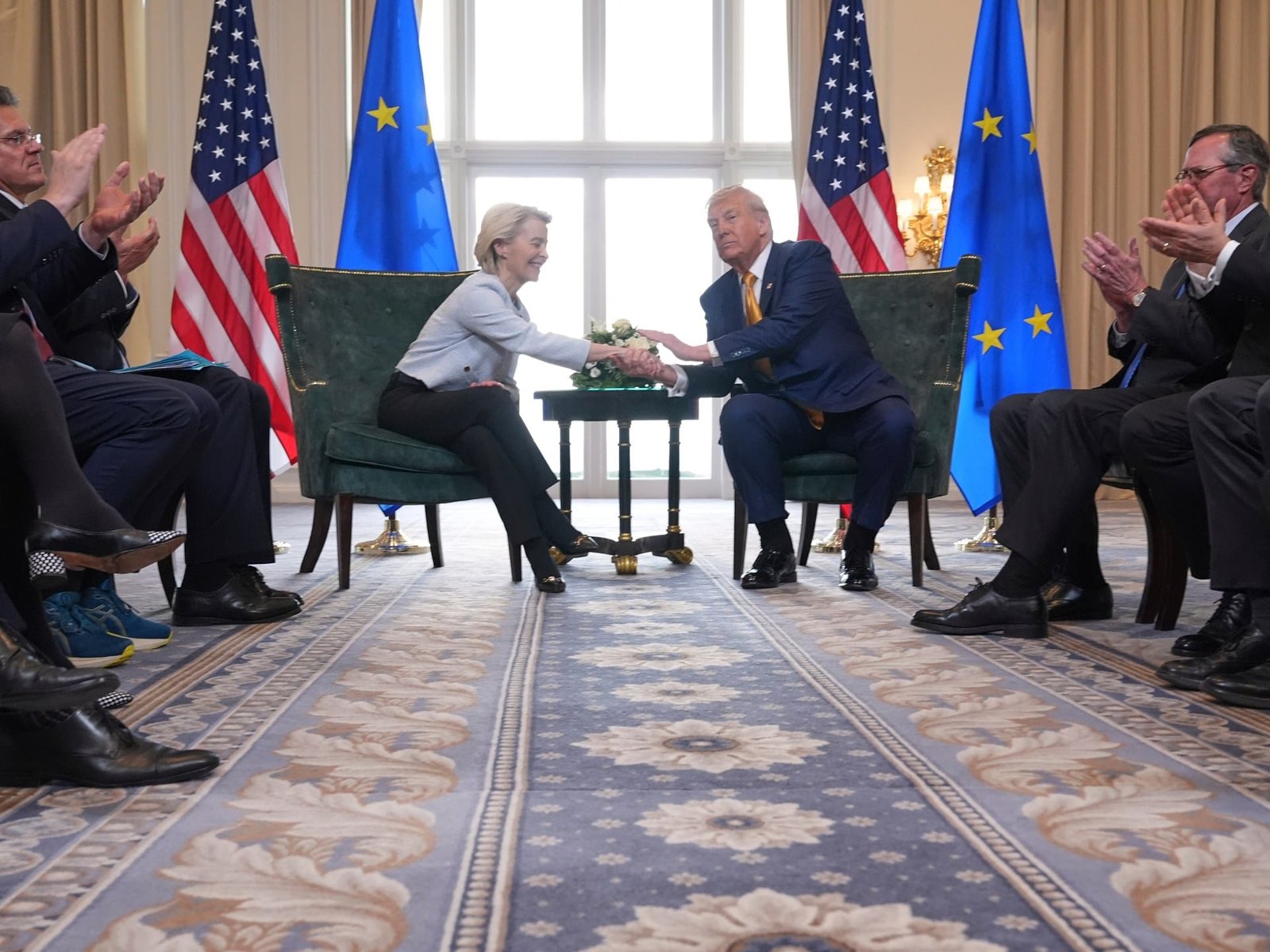 The pact has changed the balance between two of the largest economic powers in the world. The EU has simply rolled over without a fight. French Prime Minister Francois Bayrou described it as a “dark day” for the union, while a European diplomat bemoaned by saying “those who don’t hang together get hanged separately.”