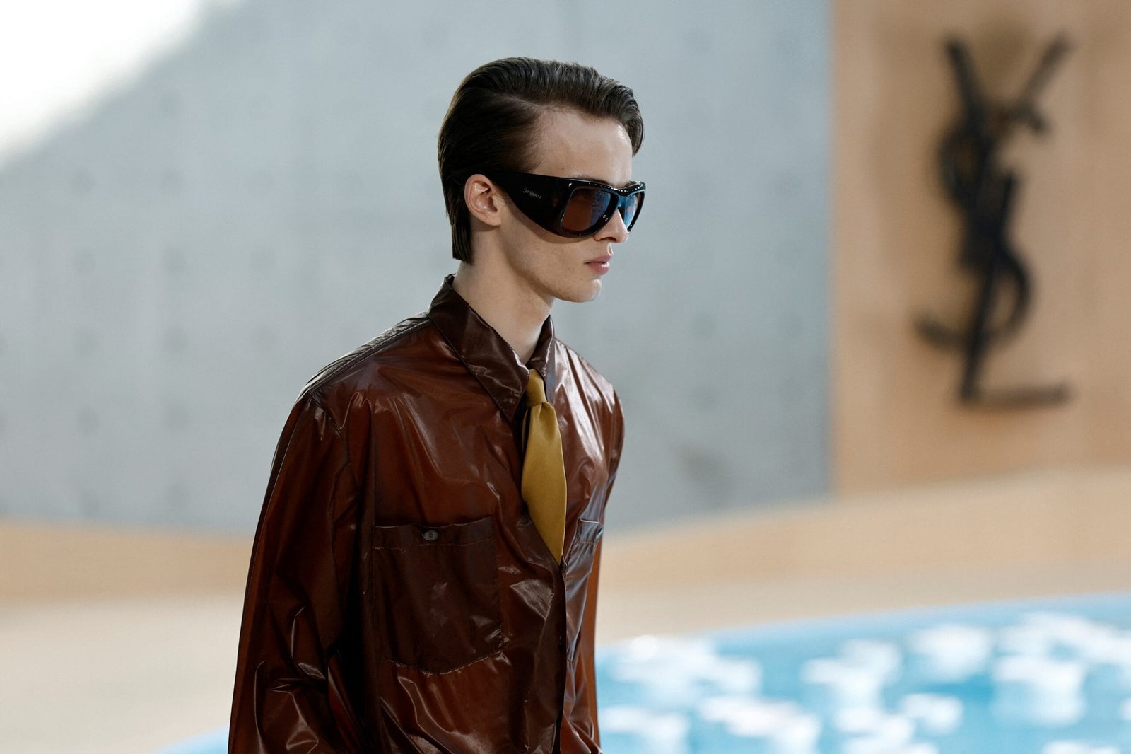 Shorts, evoking those worn by the label’s founder, Yves Saint Laurent, in his youth, were paired with bright and loose long-sleeved shirts and finished off with oversized sunglasses.