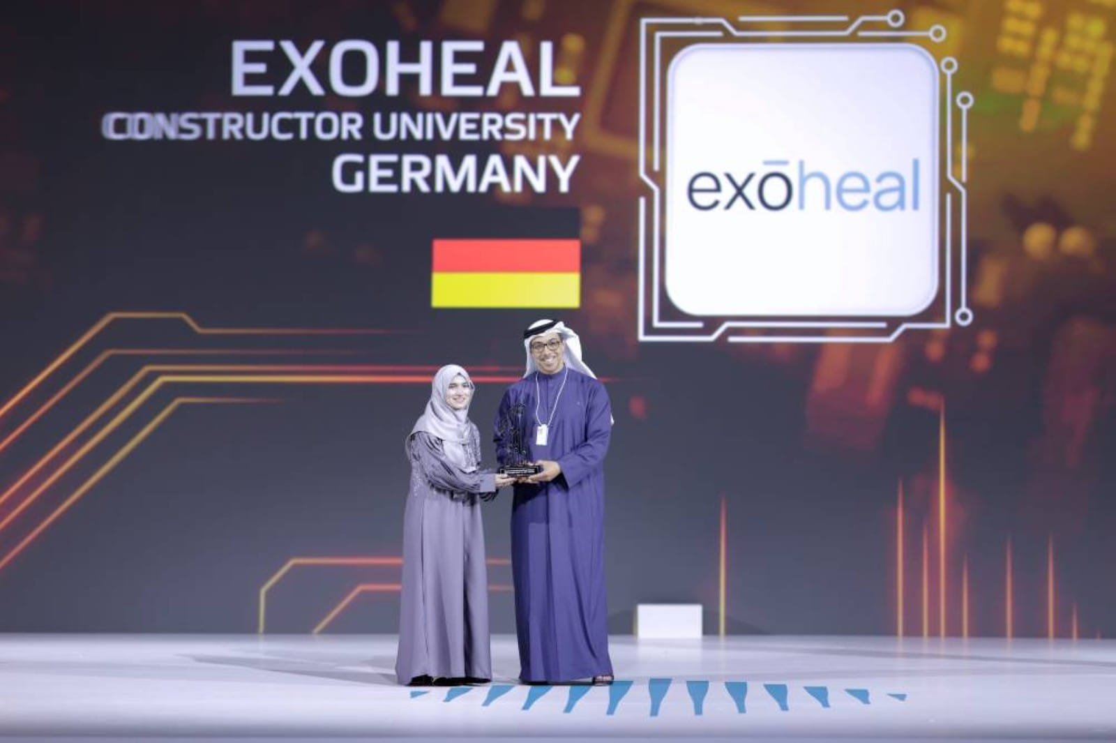 Sheikh Mansour awarded the Gold Prize to ExoHeal from Constructor University, Germany, for its AI-driven rehabilitation system that assists stroke survivors and individuals with paralysis.