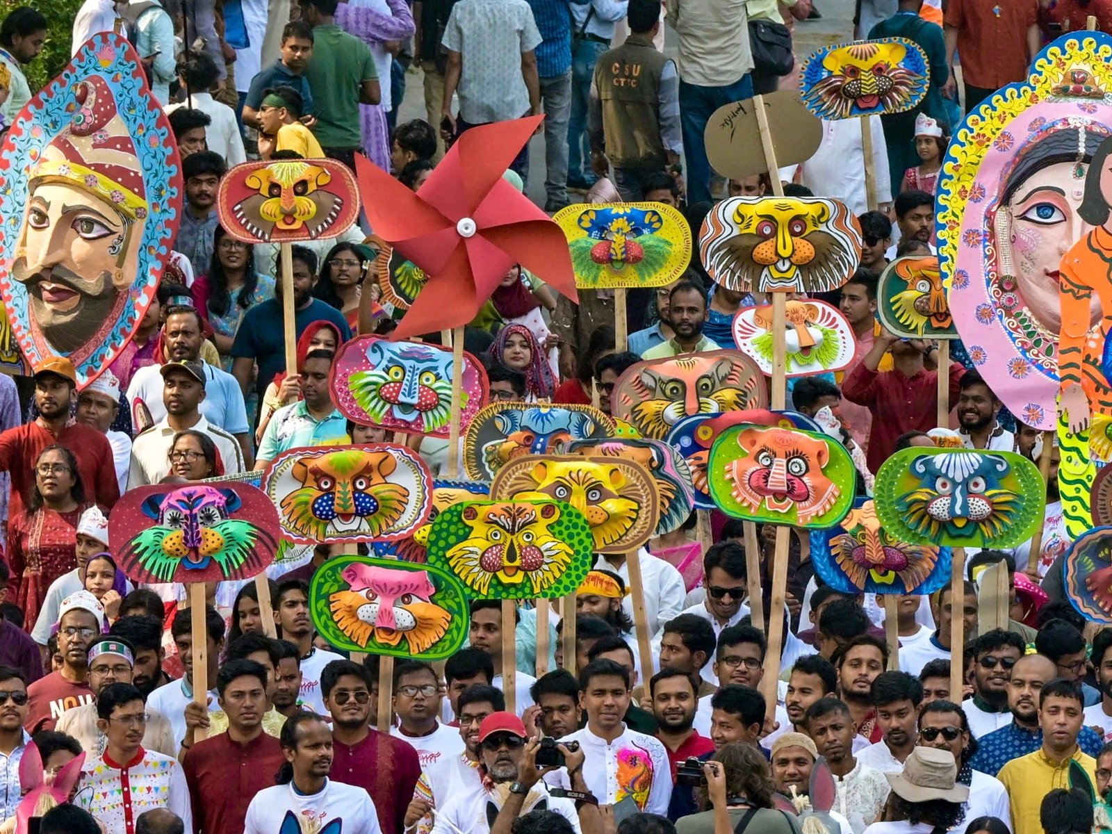 The parade begins at dawn on the first day of the Bengali New Year.